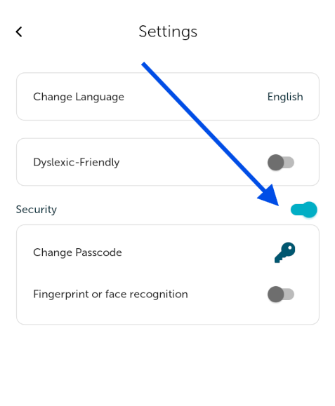 This setting only affects the app. Your library card will still have its own PIN or password.